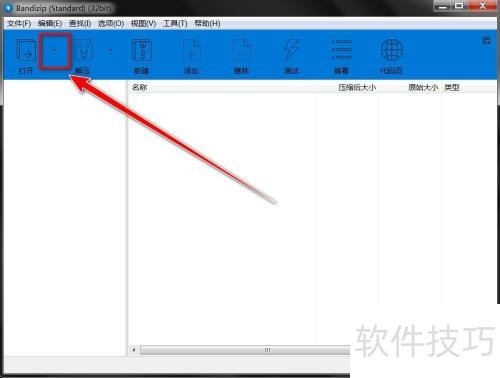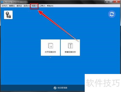 1、 在Bandizip窗口中,点击菜单栏上的“视图”。
