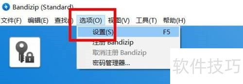 1、 第一步:在Bandizip窗口中,点击菜单栏上的“选项”。