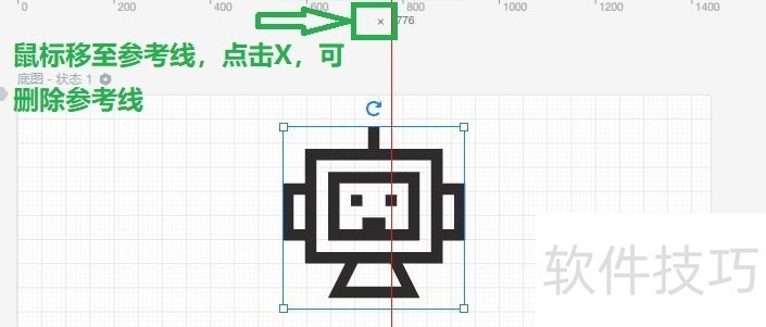 2、 删除辅助线:将鼠标移至标尺的辅助线上,旁边出现”X“,点击”X“,即可删除辅助线