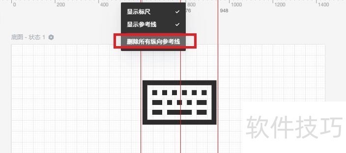 3、 删除所有辅助线:鼠标右键点击纵向或横向标尺,在右键菜单上选择”删除所有纵向/横向参考线“