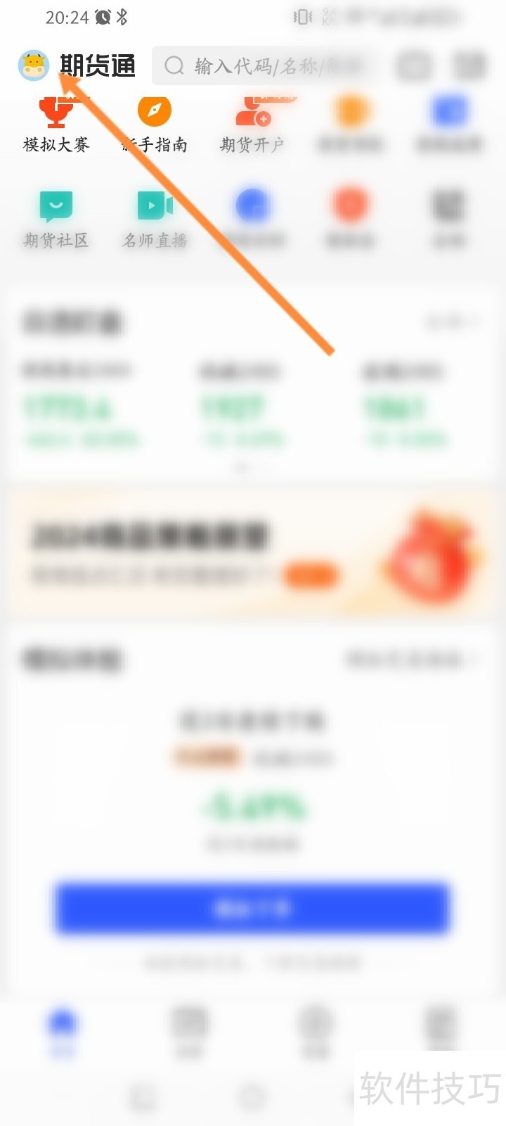 1、 打开手机的同花顺期货通软件,点击上面的头像图标。