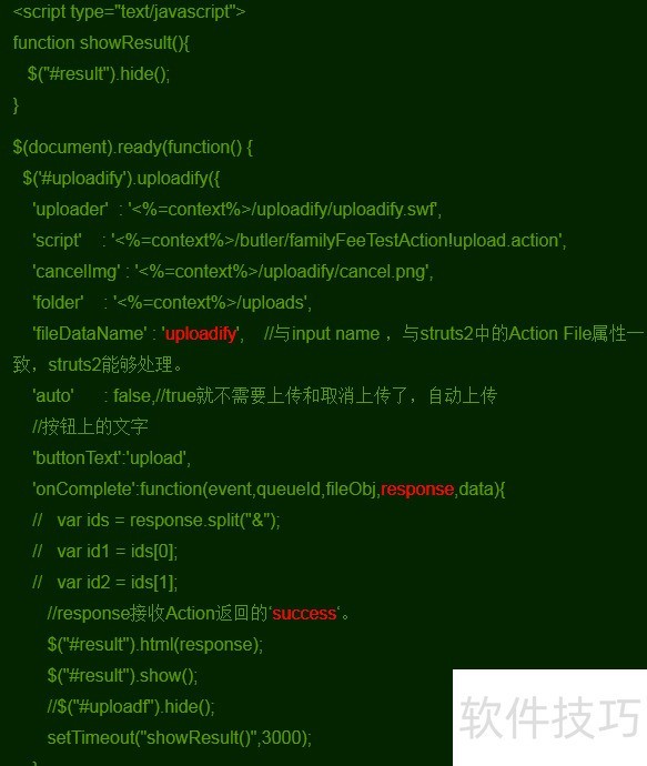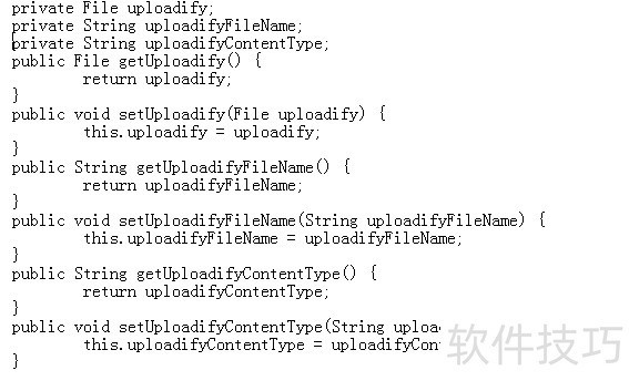 5、 Struts2 Action中?private File uploadify;?private String uploadifyFileName;?private String uploadifyContentType;提供set() get() 。。。。其它就跟Struts2中的其它处理上传一样了。