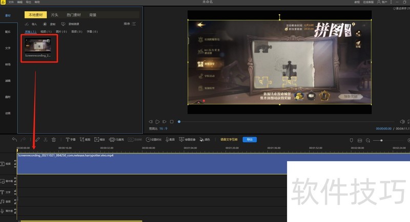 4、 接着将自己的视频素材也加入视频轨道,并放置在片头模板后面。