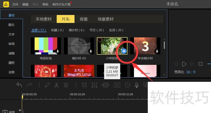 3、 然后选择提供的心仪片头模板,点击加入到视频轨道。