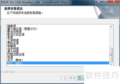 5、 然后是语言选择界面默认简体中文,点击下一步。