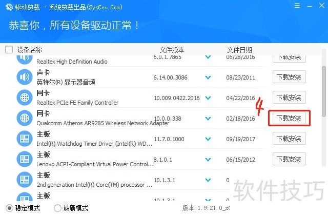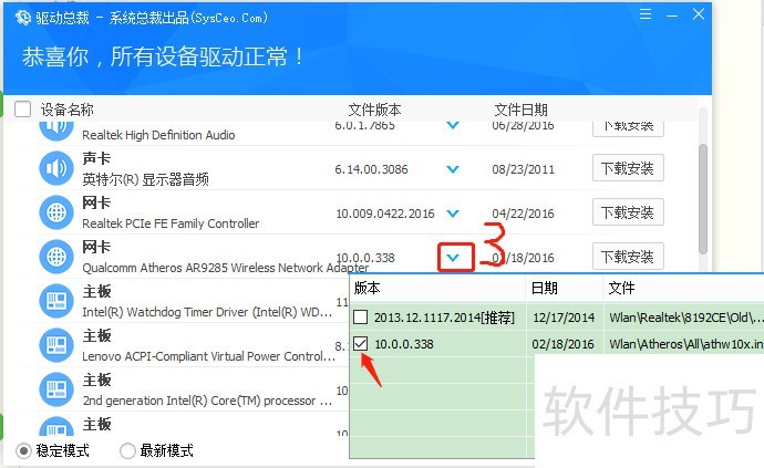 1、 下载驱动管理软件,例如驱动总裁,打开驱动总裁2点选稳定模式?