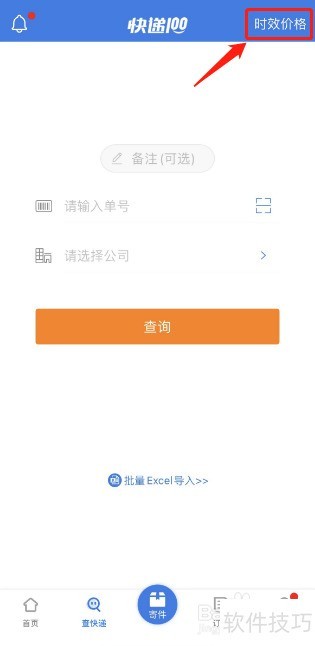 2、 进入查快递界面后,点击右上角的【时效价格】