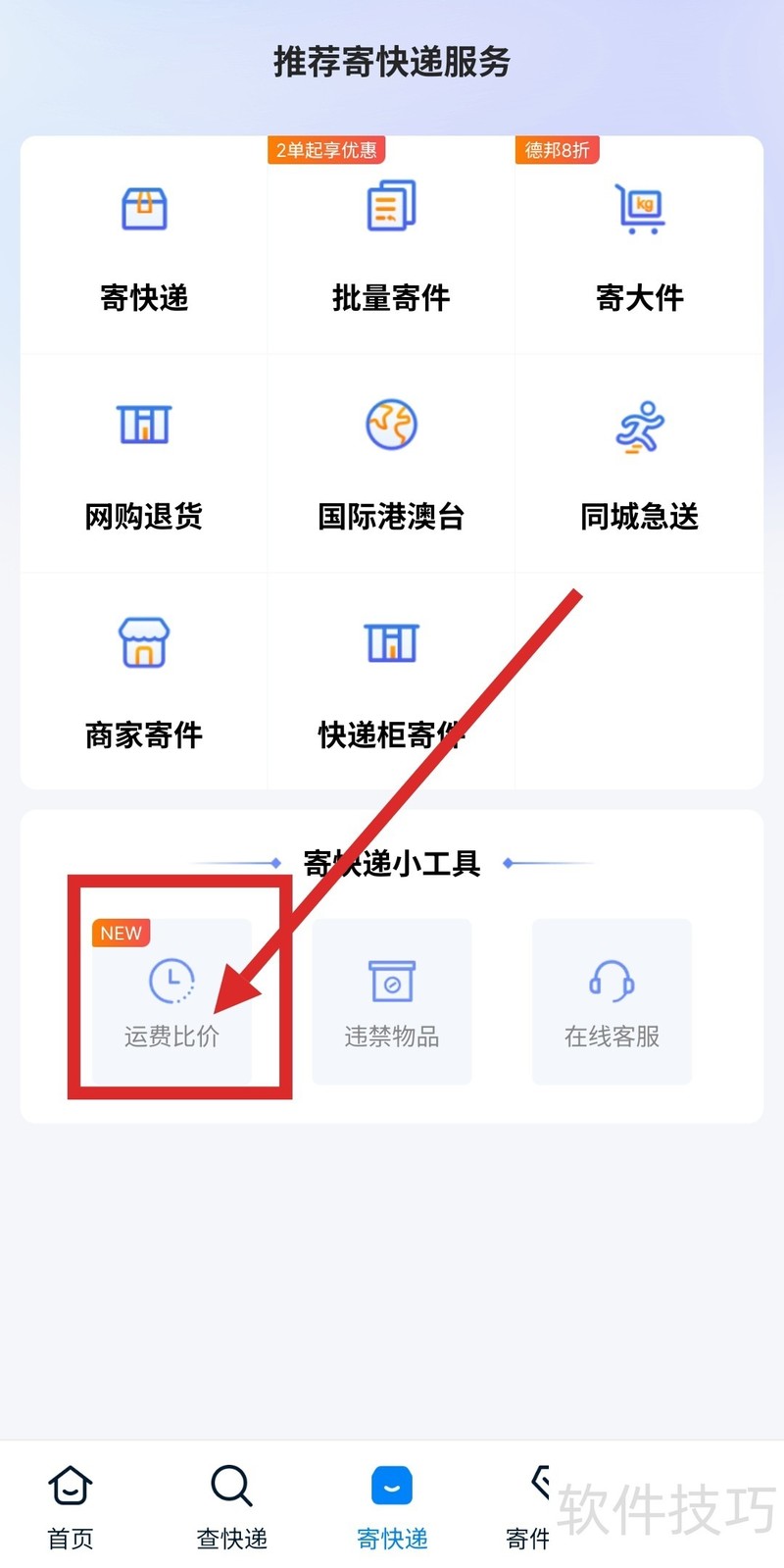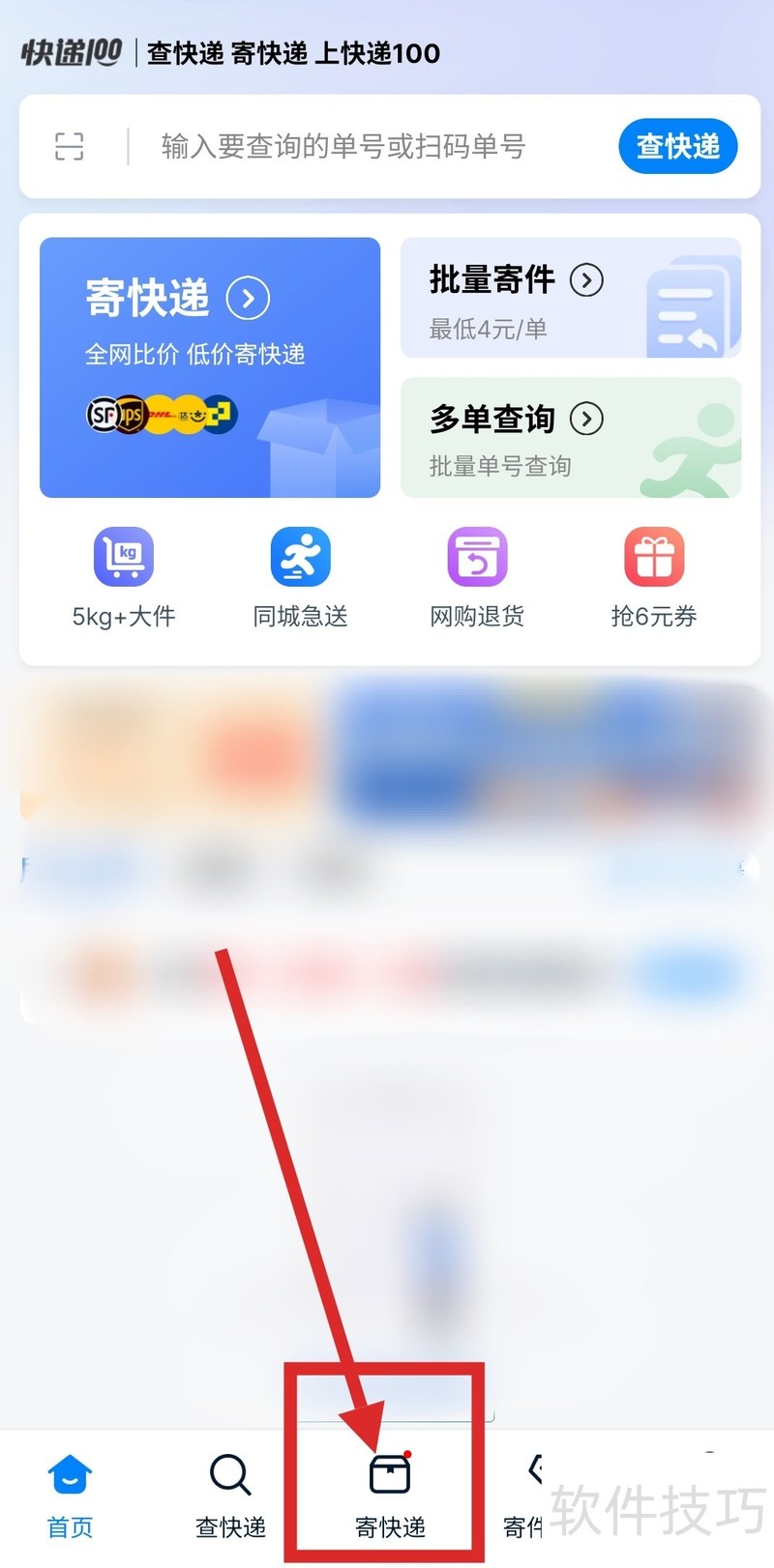 1、 打开快递100,点击首页下方“寄快递”,