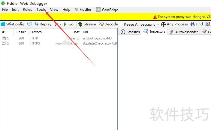4、 点击了tools菜单之后,弹出了下拉菜单选中为?fiddler?options?选项