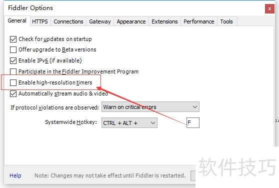 5、 进入到了fiddler?options?界面中,点击?enable?high-resolution?times?选项
