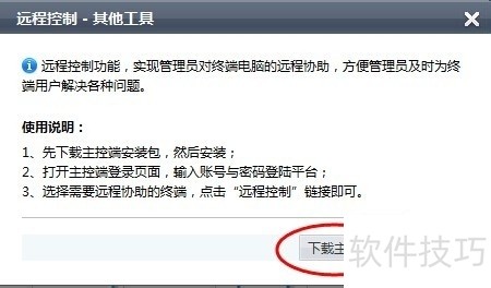 2、 点击后弹出主控端的程序说明确认框,点击按钮【下载主控端】。