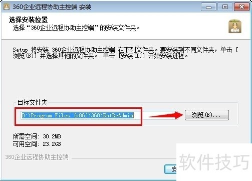 5、 然后弹出选择安装目录窗口,同样点击右侧的浏览按钮,选择电脑中的安装位置,最后点击【安装】。