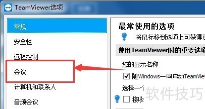 4、 在选项里点击【会议】