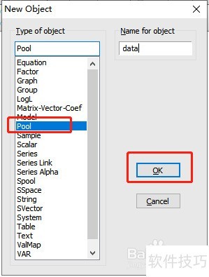 4、 找到并选择pool,在name for object中给自己的数据进行命名,点击ok