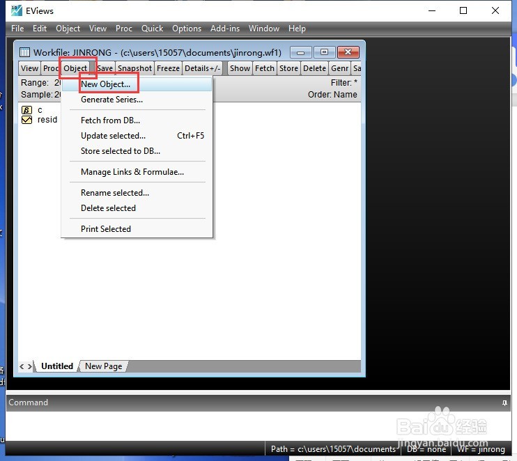 7、 把涉及到的4个变量以以下形式放进去,用空格“ ”隔开,OK。注:因面板数据存储在eviews中显得很多,不用的变量就不要放了,不然后面会干扰变量使用