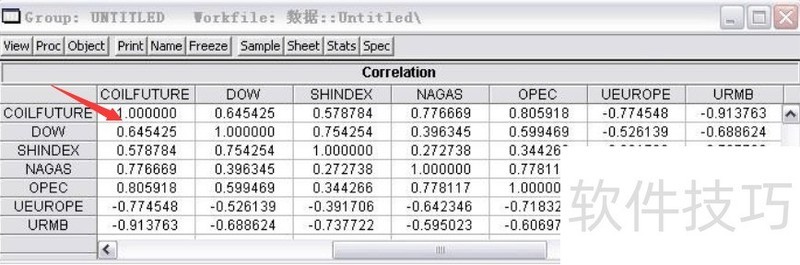 3、 第三步,在系统弹出窗口中输入“cor?coilfuture?dow?shindex?nagas?opec?ueurope?urmb,”分析变量关系。