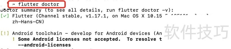 2、 在终端输入 flutter doctor,回车,等待命令执行完成