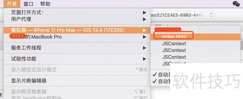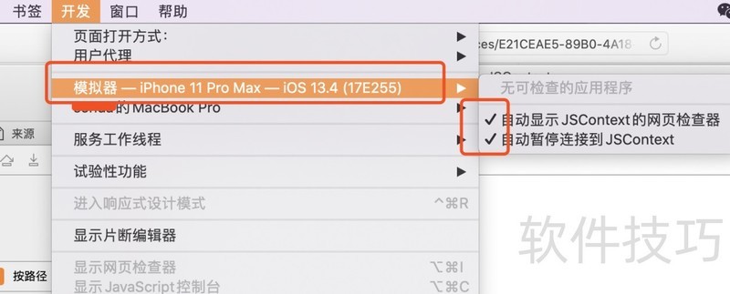1、 遇到的坑:按照资料说明去操作,不但没有出现调试界面,也找不到要调试的界面,打开自己的safria浏览器并没有看到模拟器的选项,这可如何是好呢。现在我们来详细介绍一下调试的步骤说明。2调试原理:通过本地的浏览器的“开发”选项 找到xcode?中运行的模拟器设备,再找到模拟器设备运行的界面进行查看控制台错误信息,此时在本地浏览器看到的错误信息即为模拟器运行的代码的错误信息。3首先在本地浏览器选项是否能看到“开发”?选项。如果看不到