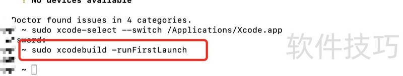 4、 输入命令:sudo xcodebuild -runFirstLaunch