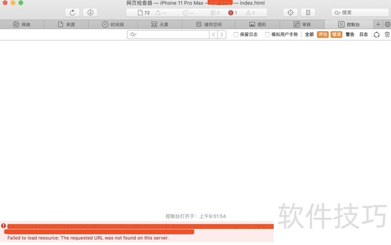 10、 打开后index.html??后可在控制台进行错误信息查看和调试,需要注意的是,如果此处看不到具体的你想要调试的界面说明模拟器还没加载到此界面,或者加载此界面之前就报错了。