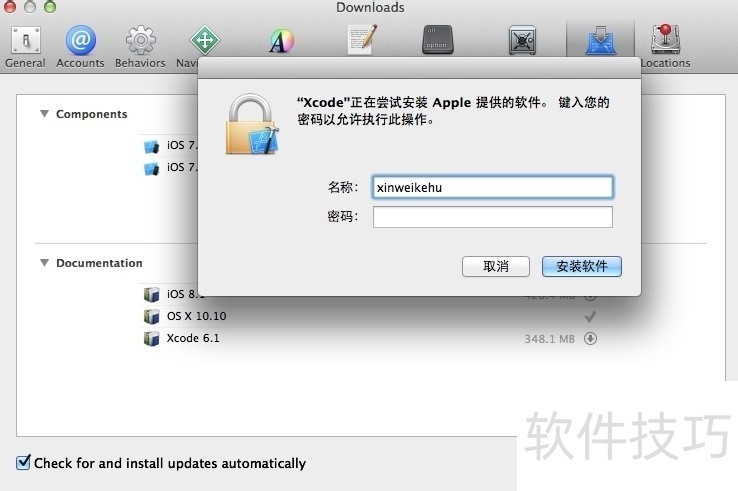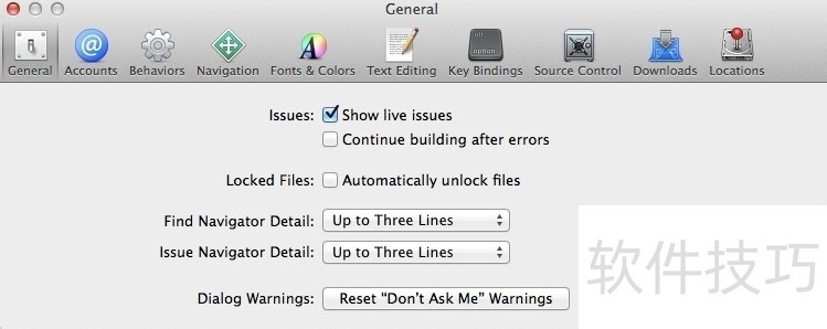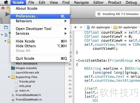 2、 点击上图中Preferences(首选项),打开xcode偏好设置面板。