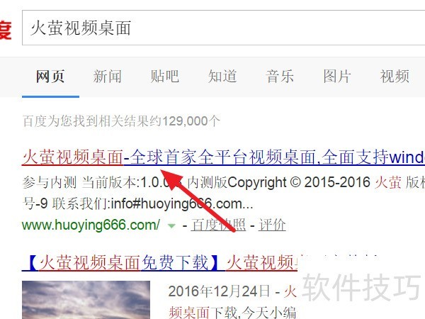 2、 或者在网页搜索【火萤视频桌面】,点击第一条打开官网