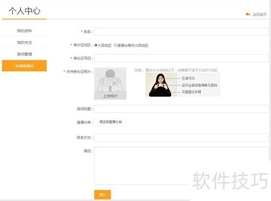3、 好了这一切准备好了以后,注册登录你的斗鱼TV账号,然后进入个人中心,进行直播申请。打星号的必要选项一定要填写哦。描述你想要直播的游戏名称类型,你的电脑配置等等信息