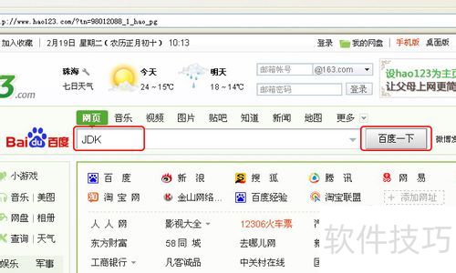 1、 首先打开浏览器, 在网络搜索里输入(JDK),然后点击(网络一下)。