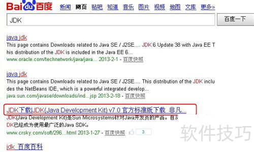 2、 网页跳到搜索结果,这里选择点击第三项JDK下载。