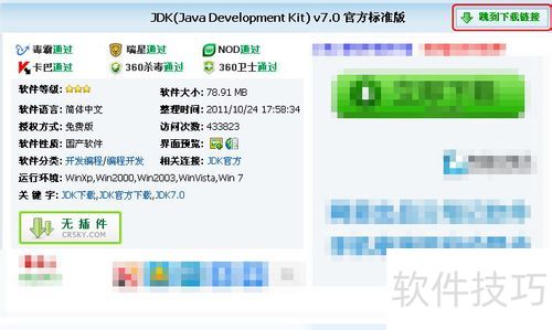 3、 在打开的相关网页里,会看到有关JDK下载的信息。 点击(跳到下载链接)。