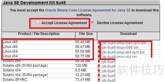 1、 下载Linux系统的jdk下载前先选择Accept License Agreement (接受许可协议),选择适合自己的Linux jdk,x86表示32位的 x64是64位的。