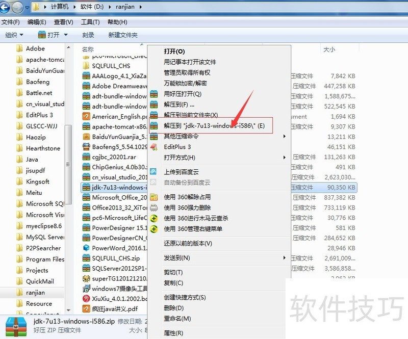 1、 右击解压JDK 1.7的安装包扬薪的压缩包。