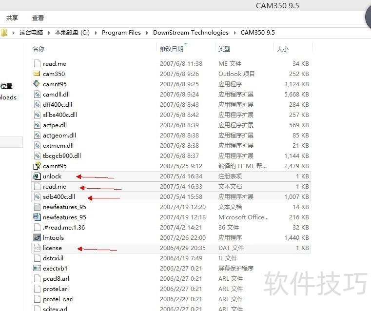 11、 复制cam35095ck目录下所有文件到安装目录:C:Program FilesDownStream TechnologiesCAM350 9.5