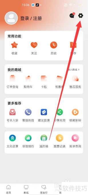 1、 首先打开华数TV我的页面,点开页面右上角的设置
