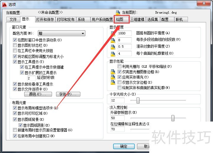 2、 第二步,单击鼠标右键,选择“选项”,进去设置对话框,单击“绘图”,如图所示;