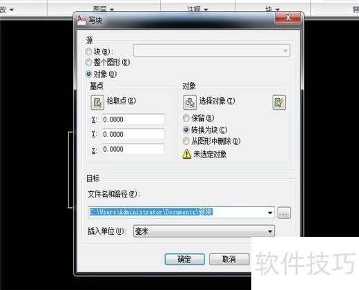 4、 输入快捷键“w”,按回车键,出现“写块”窗口,如图所示。