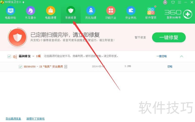 如何利用360安全卫士修复系统漏洞和nsa漏洞
