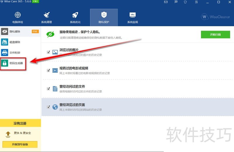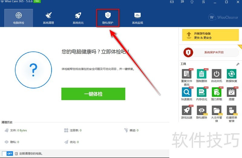 1、 打开“Wise Care 365”,点击工具栏上的“隐私保护”。