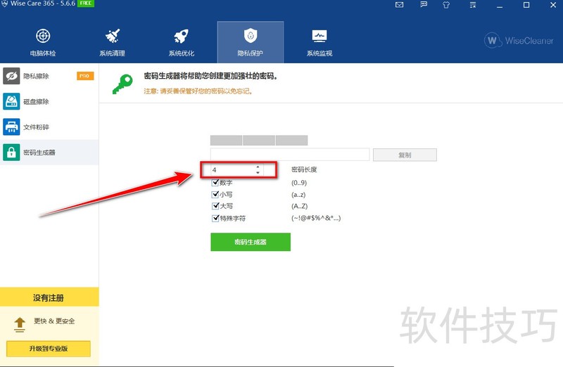 3、 点击密码长度左边的“上下”两个三角按钮,可以设置密码的位数。