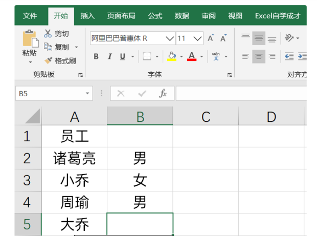1、打开Excel文档,手动录入数据。