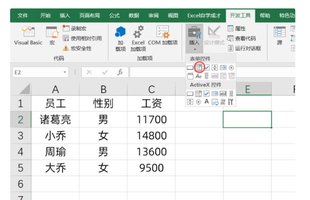 1、在“开发工具”中插入组合框。