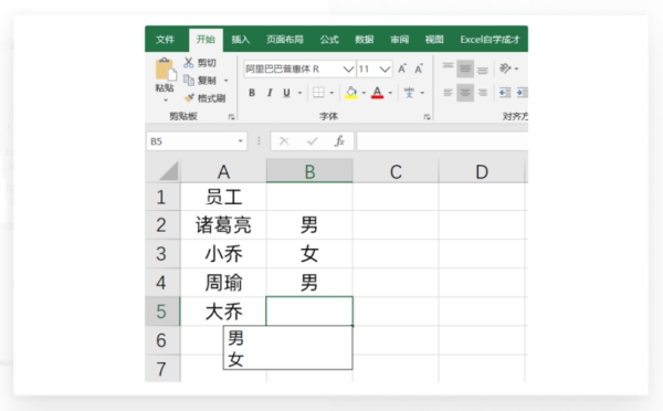 2、选中单元格,按ALT+↓键,弹出下拉选择菜单。