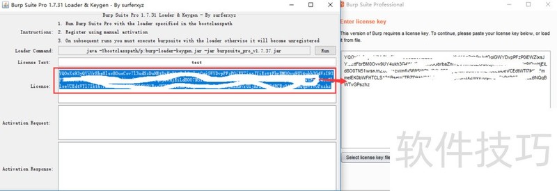 3、 把keygen中的License复制到弹出的burpsuite窗口中,点击Next按钮