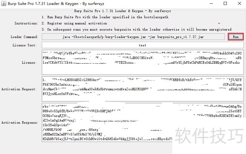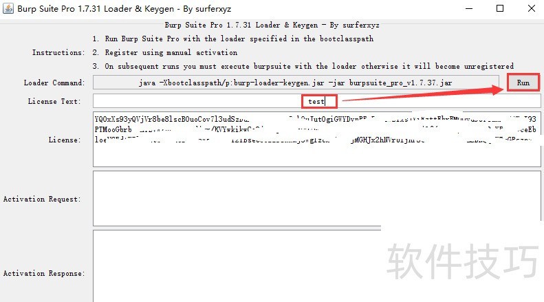 2、 修改License Text文本中的内容为text,点击Run按钮运行