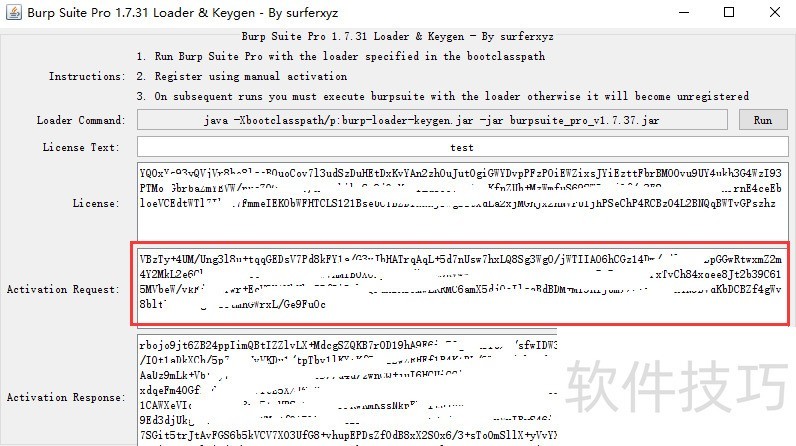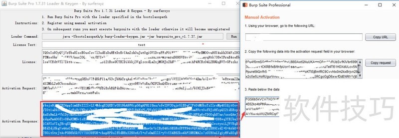 6、 把复制的request复制到kengen窗口的Activation Request窗口中