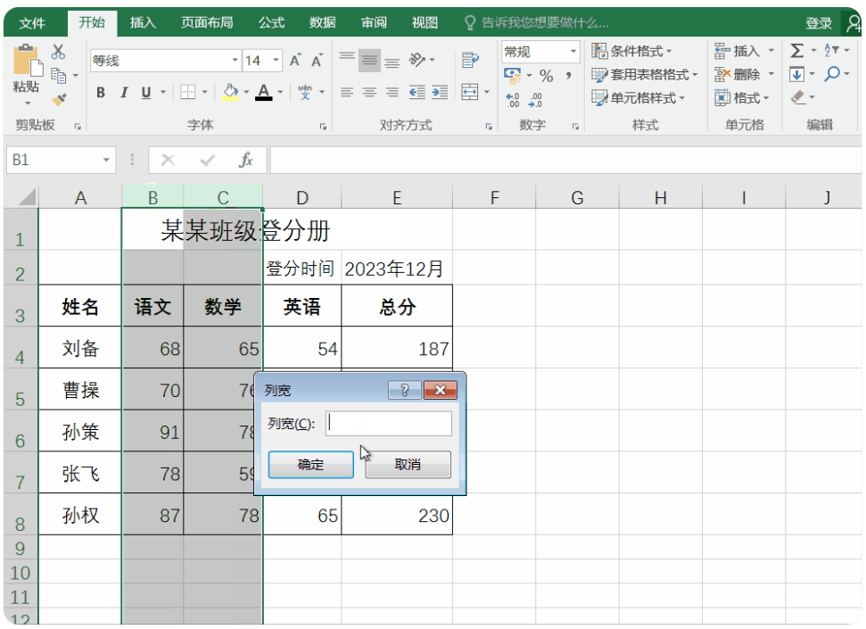 ①调整列宽:选择列,右键点击选择“列宽”,输入数值后点击“确认”。