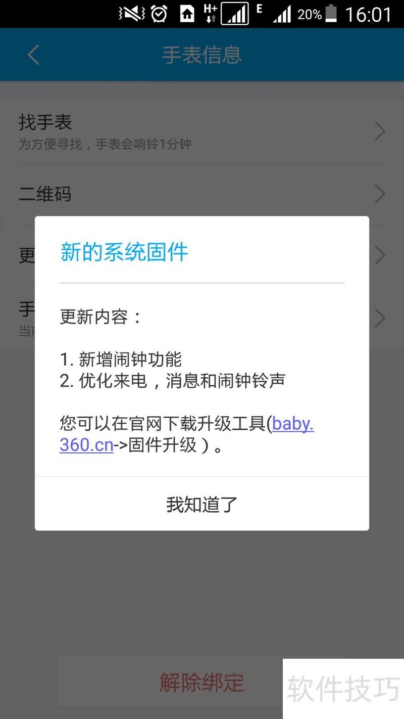 1、 相信许多360儿童卫士手表用户都出现过这种提示,就是让更新固件,我们先看下这个图片。