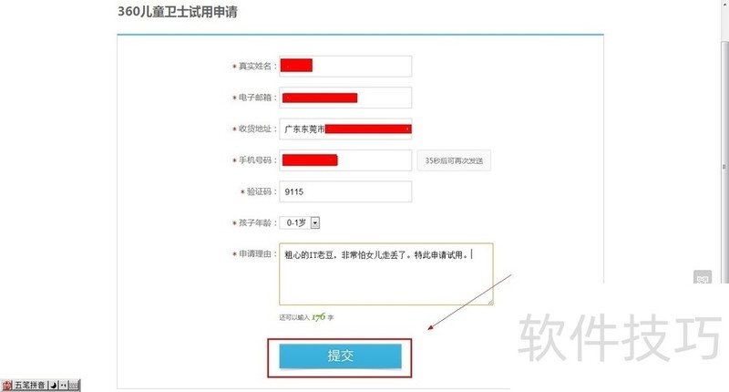3、 登陆360账号以后。需要填写一些基本资料。申请理由一定要写的坚强有力的表现你现在很需要这样的产品,这样就会提高申请的通过率。填完成以后点击【提交】