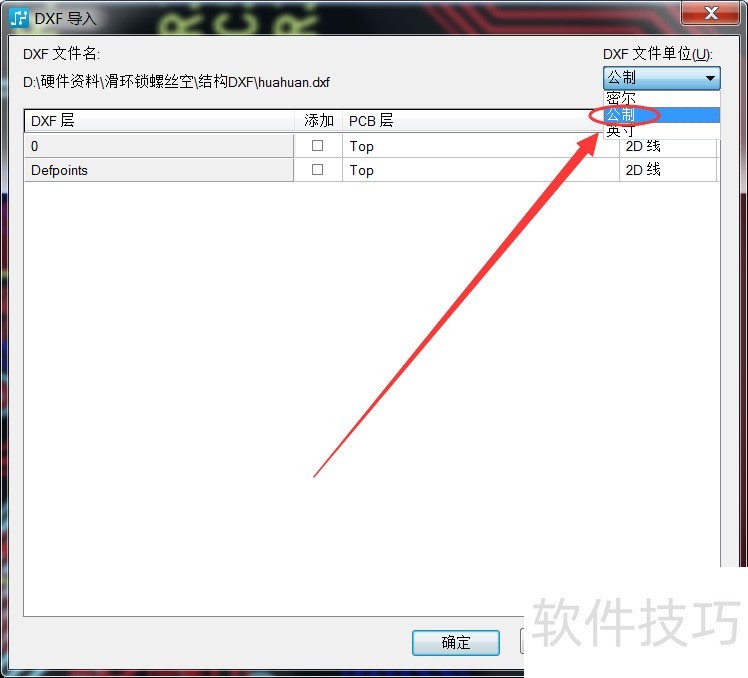 4、 第四步:在DXF导入选项卡里面单击选中单位为【公制】,如图所示。