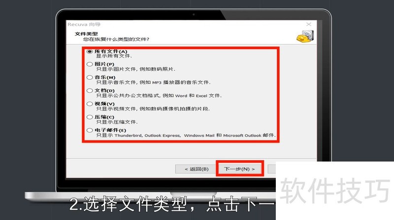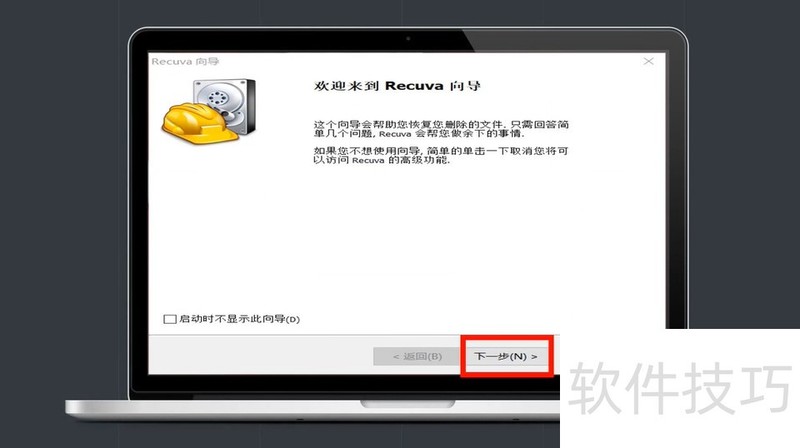 1、 电脑中打开“recuva”软件,点击“下一步”。